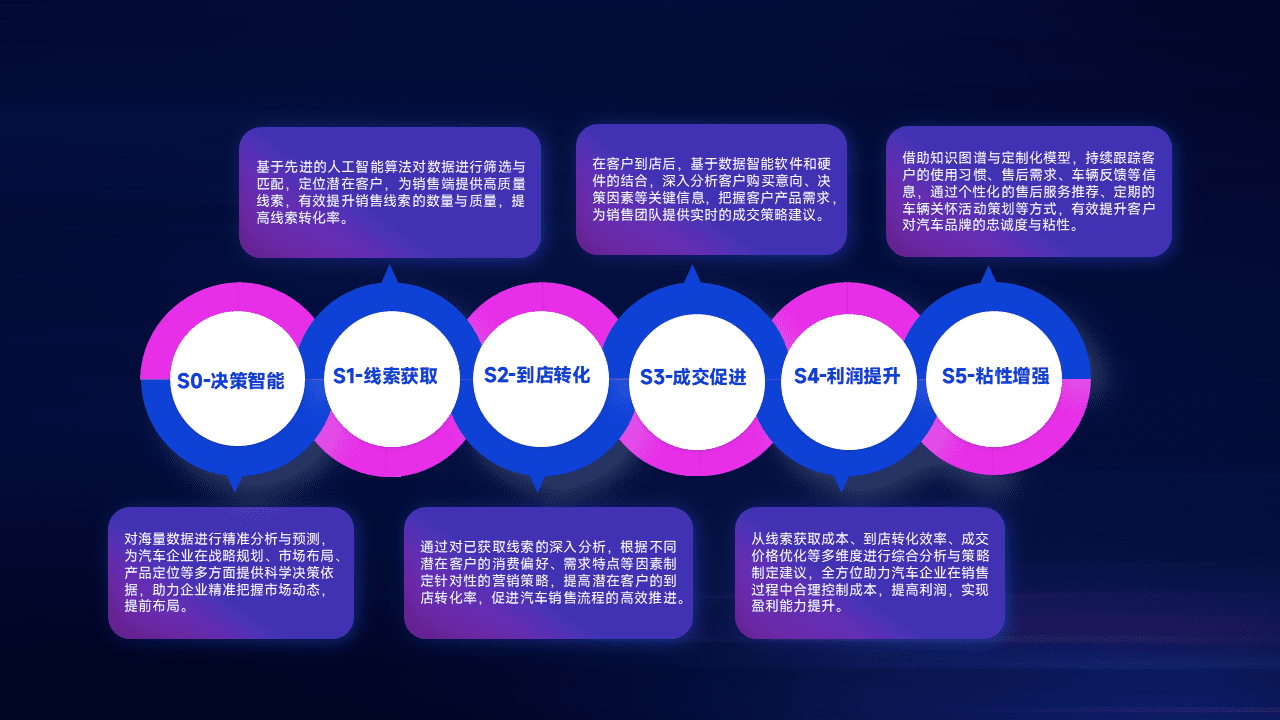 通过拓宽潜在客户来源、、优化线索分配并提高到店转化率,,,,以增强销售效率。。同时,,,,利用线索数据不断优化分析模型,,,,有效提升转化率,,扩大营销影响力。。。